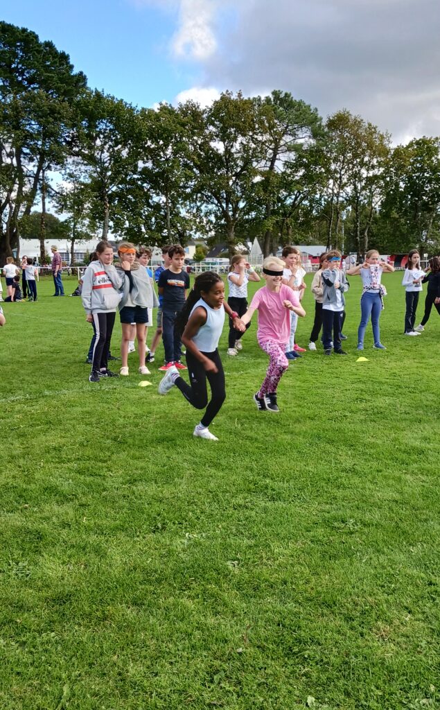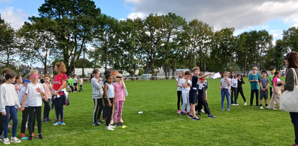 Le jeudi 9 octobre, les classes de primaire des écoles de Mériadec, Plumergat, Pluneret, Pluvigner et Sainte-Anne d’Auray se sont toutes retrouvées au stade de Sainte-Anne.