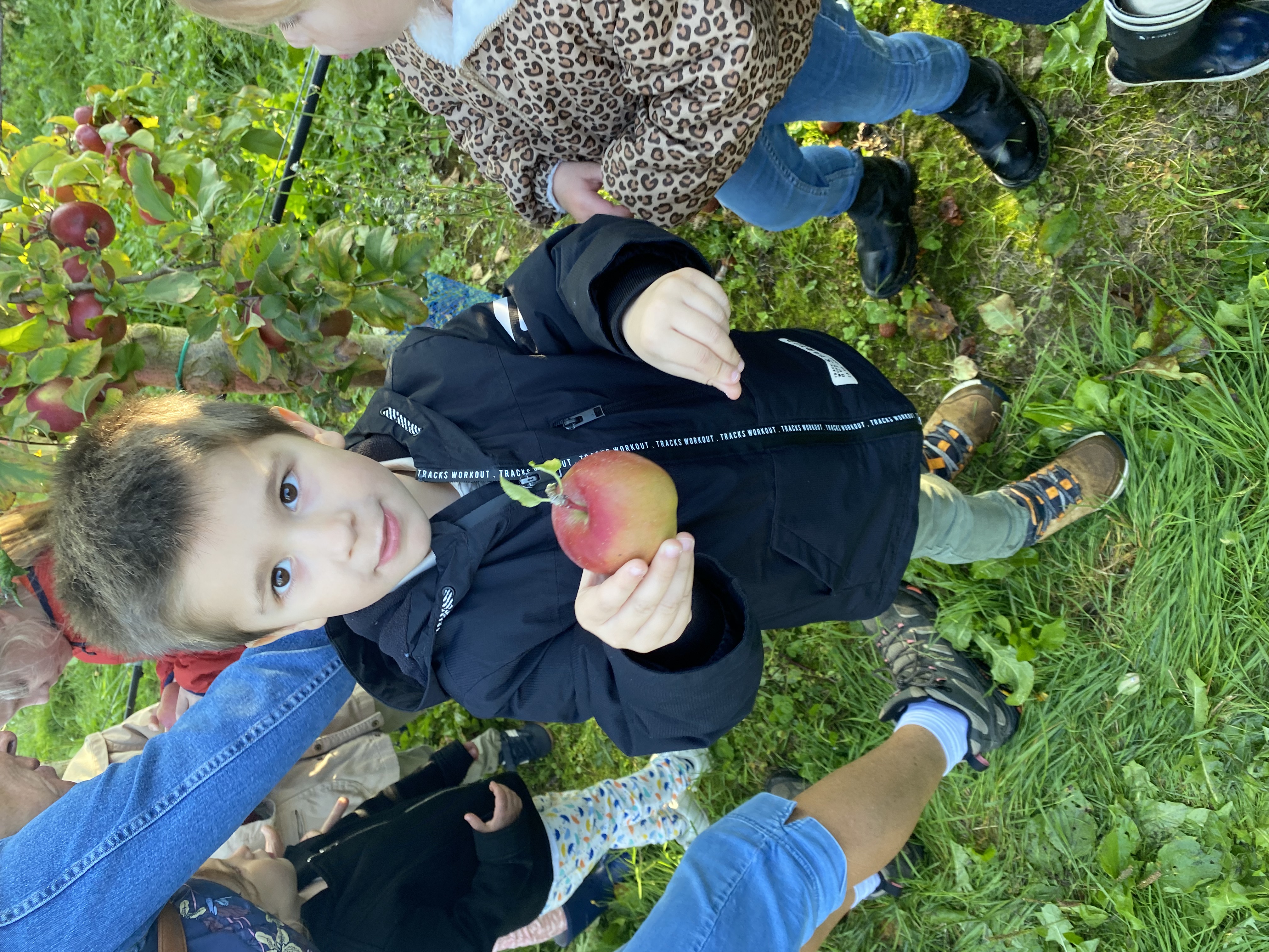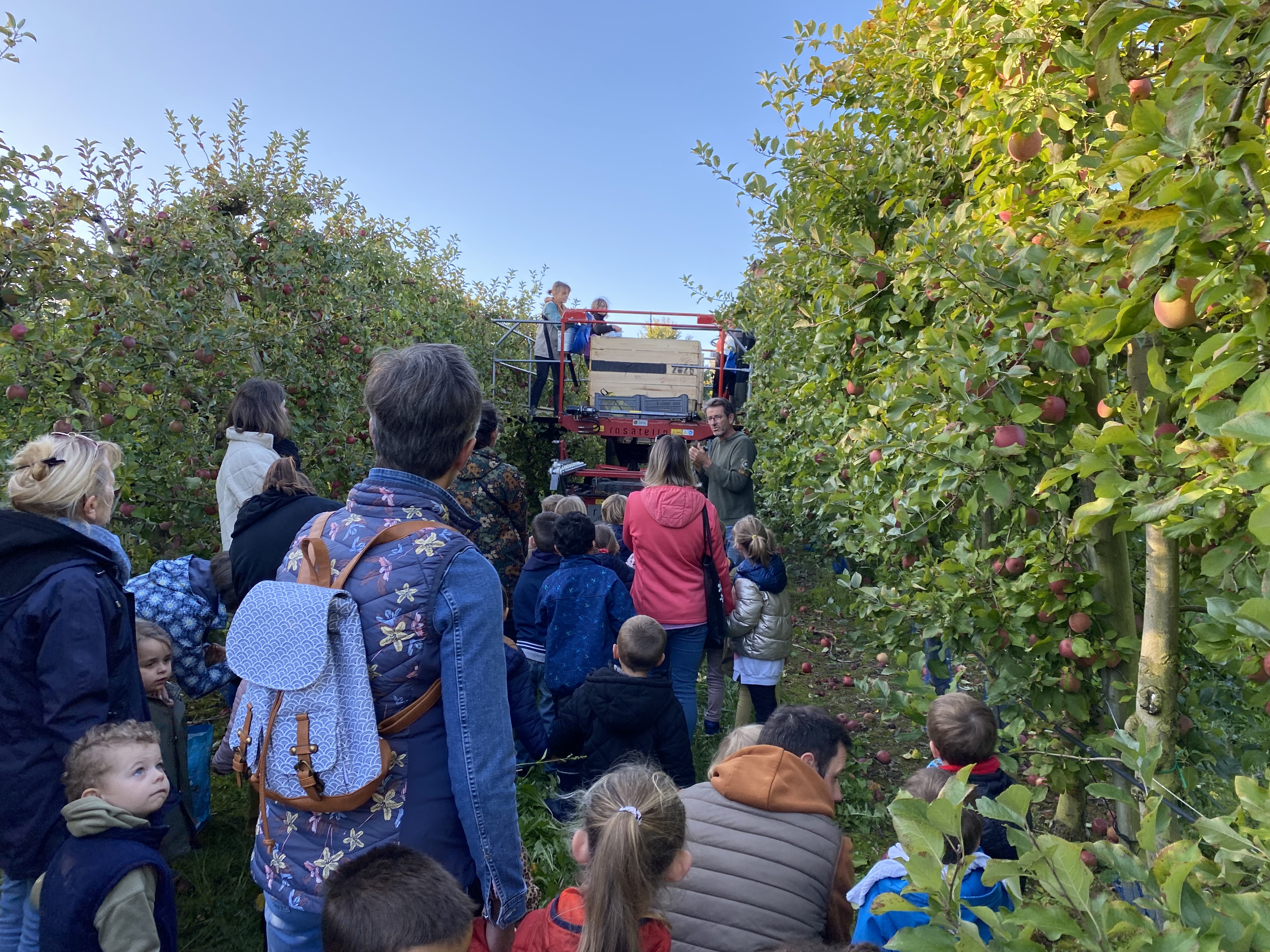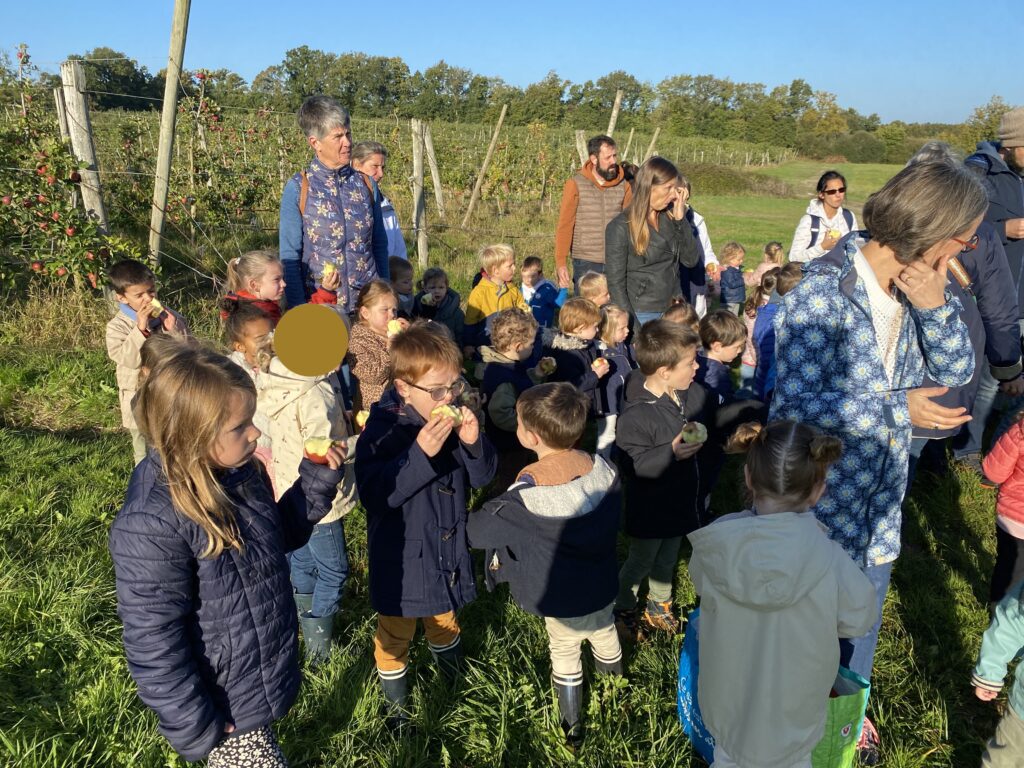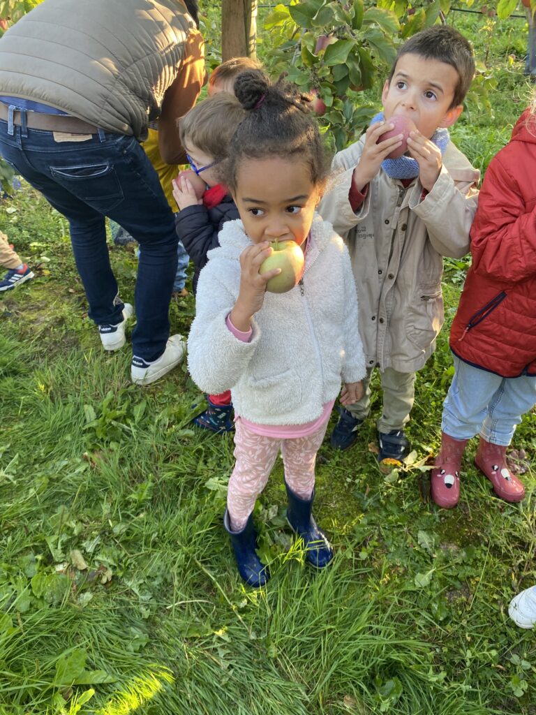 Nous nous sommes baladés dans les allées. Mr Gauter nous a expliqué les chaussettes à lapin, les différentes variétés de pommes, le système d’arrosage, comment cueillir les pommes. Nous avons même eu le droit d’en déguster une.