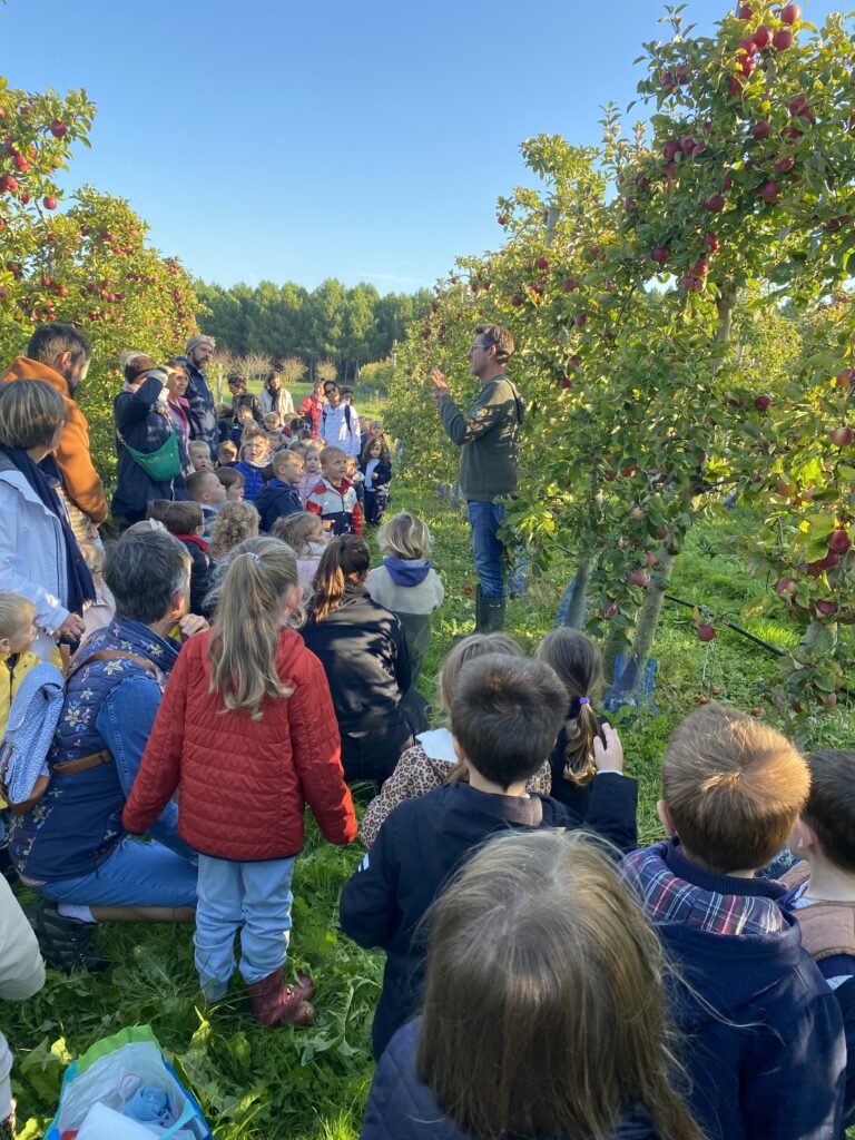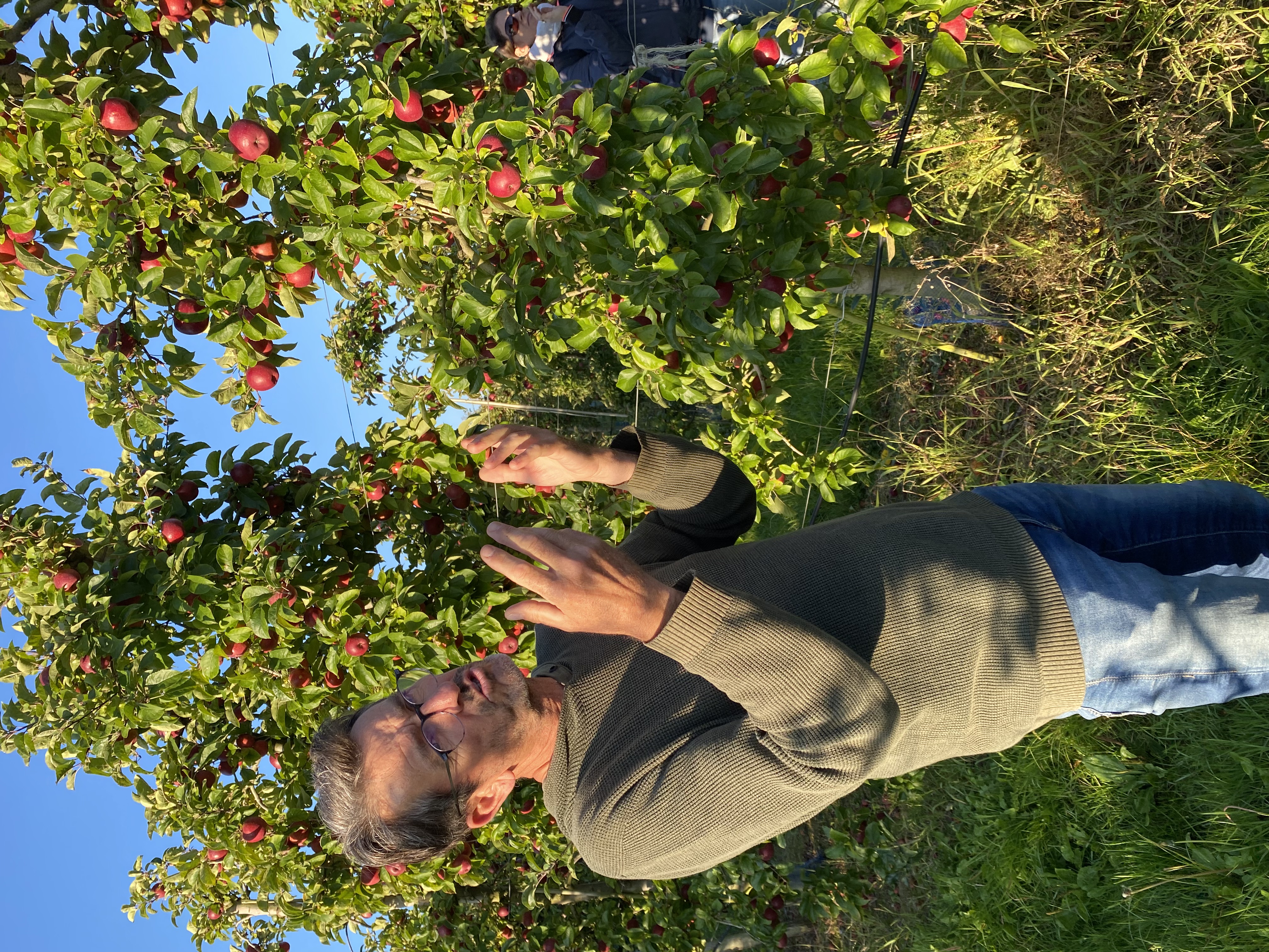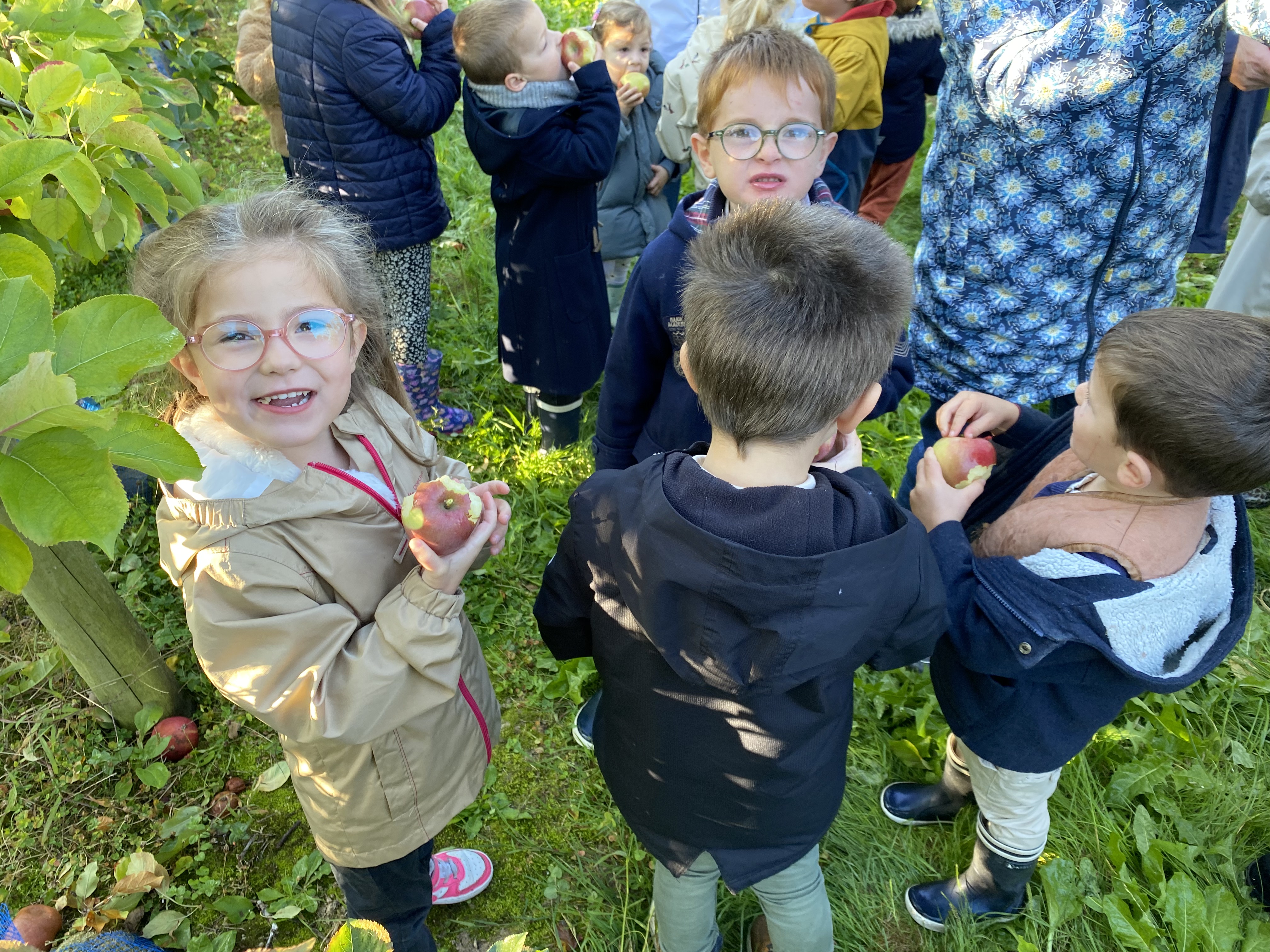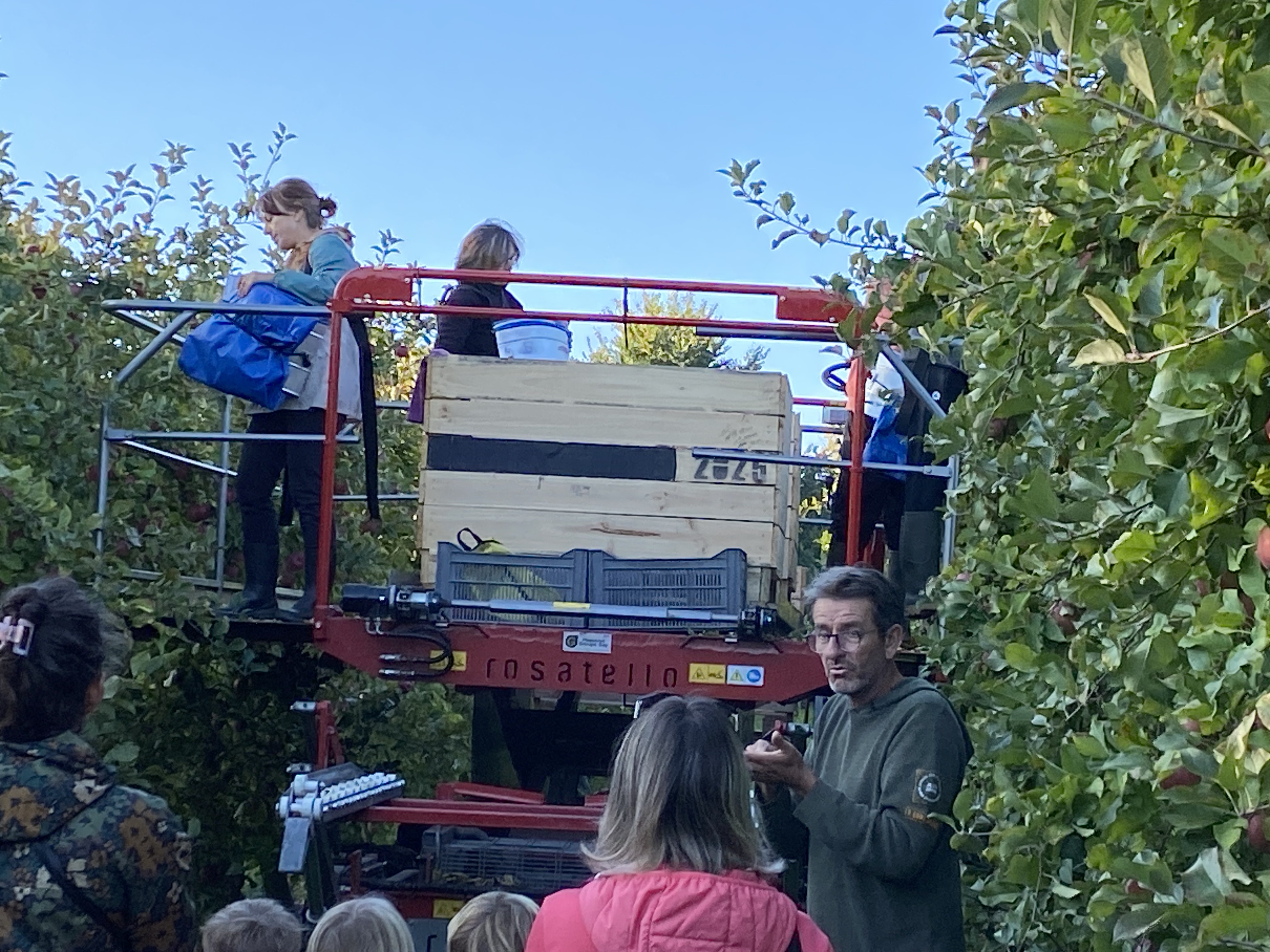 Nous nous sommes baladés dans les allées. Mr Gauter nous a expliqué les chaussettes à lapin, les différentes variétés de pommes, le système d’arrosage, comment cueillir les pommes. Nous avons même eu le droit d’en déguster une.