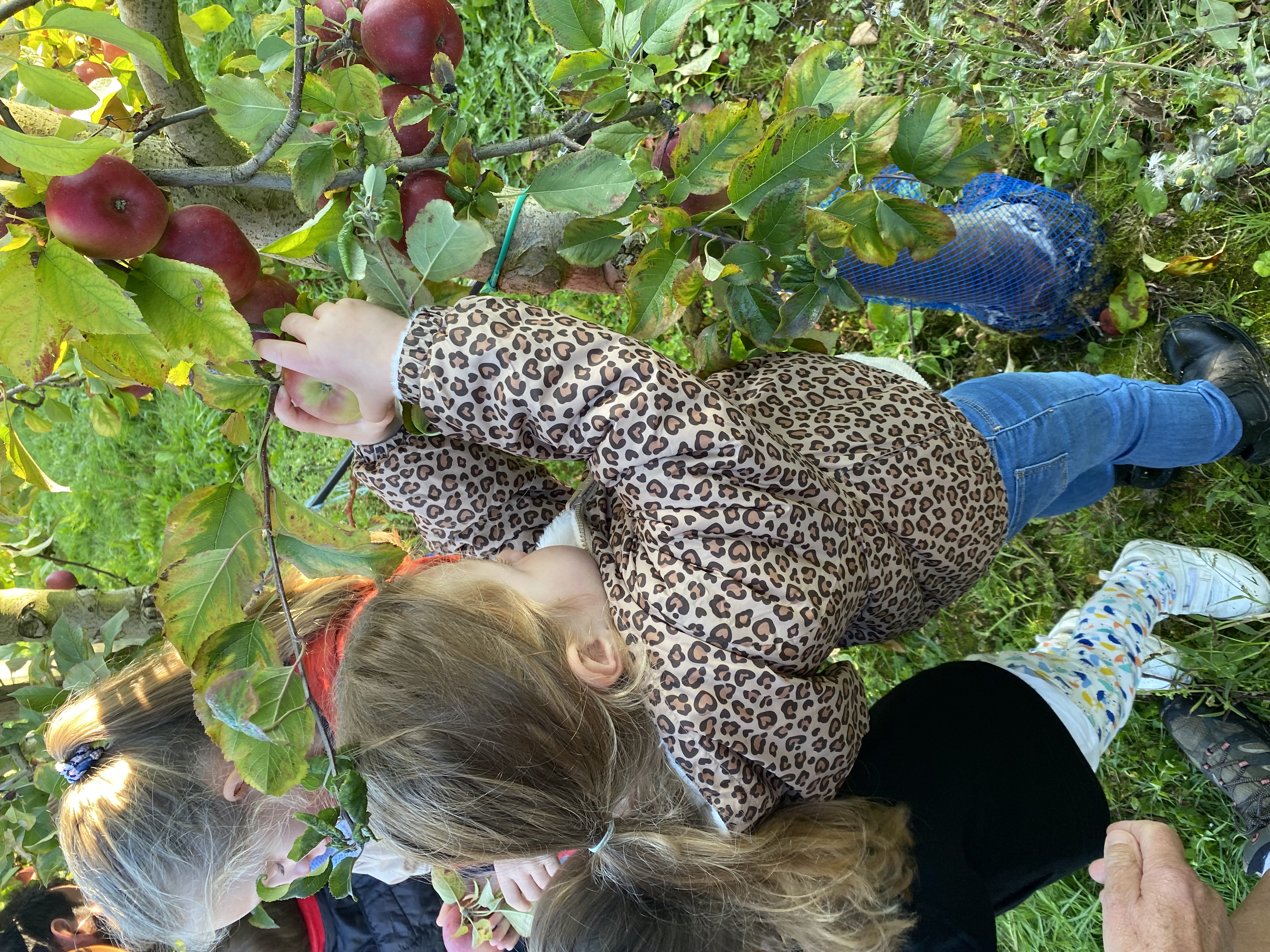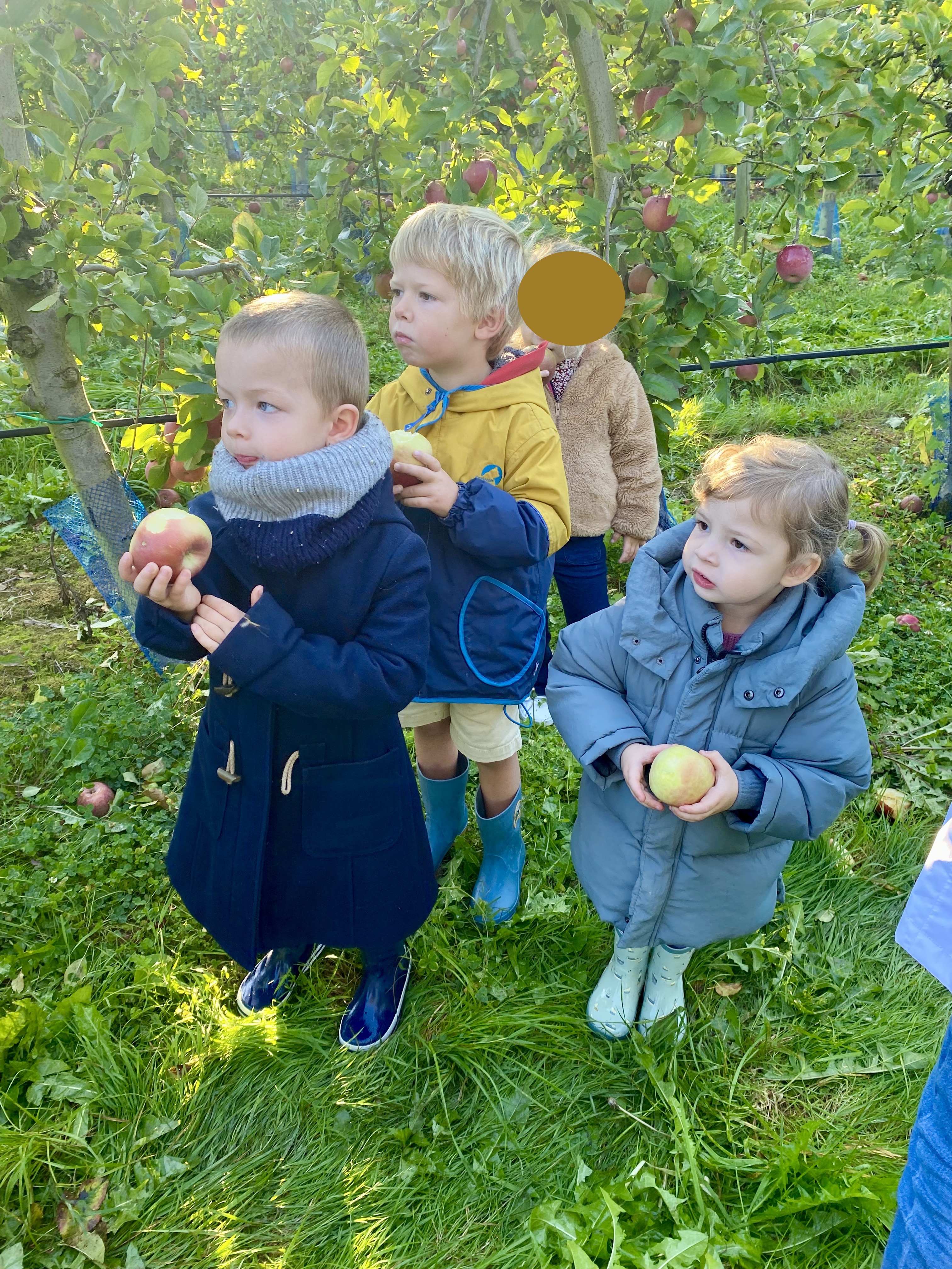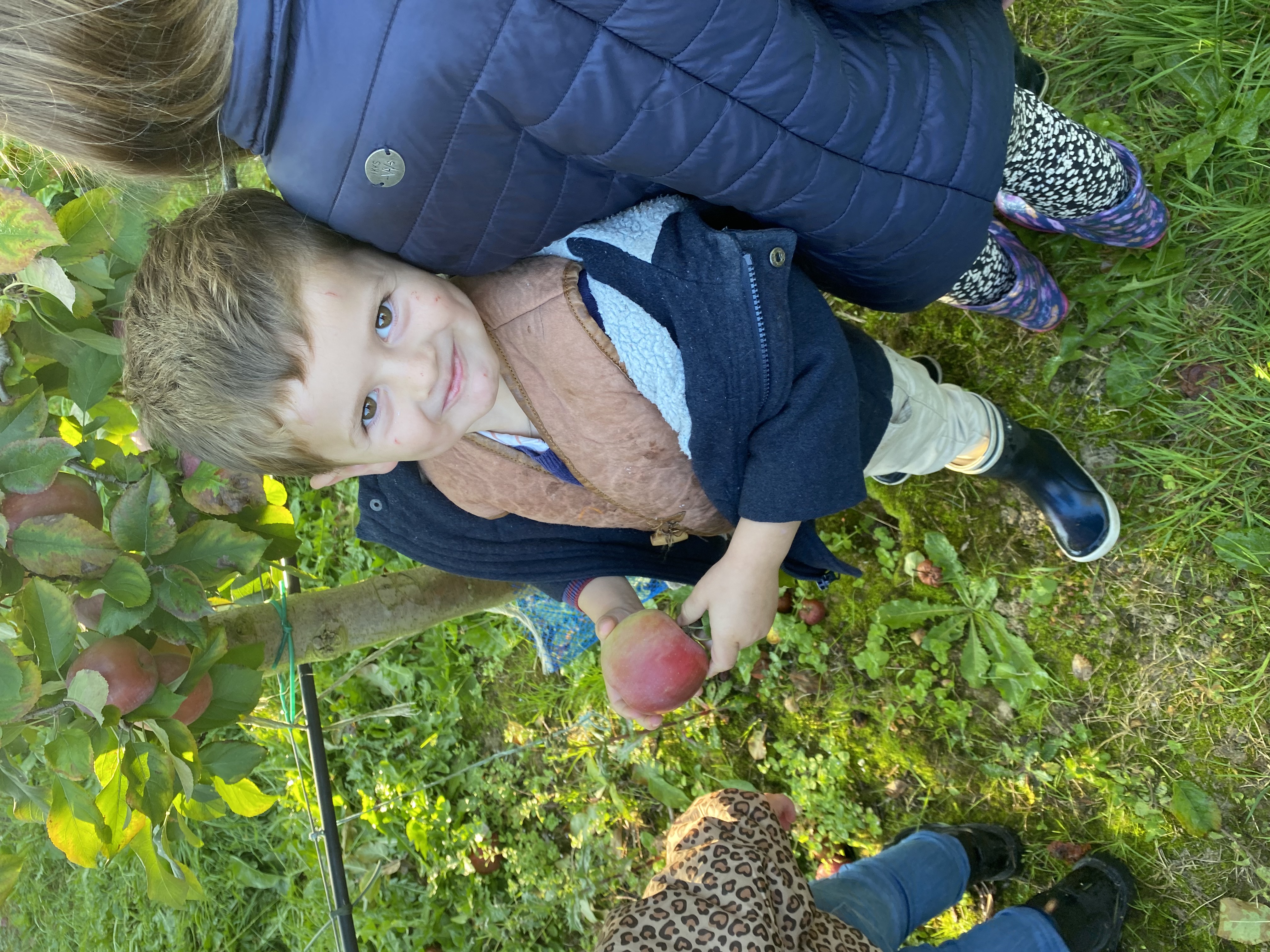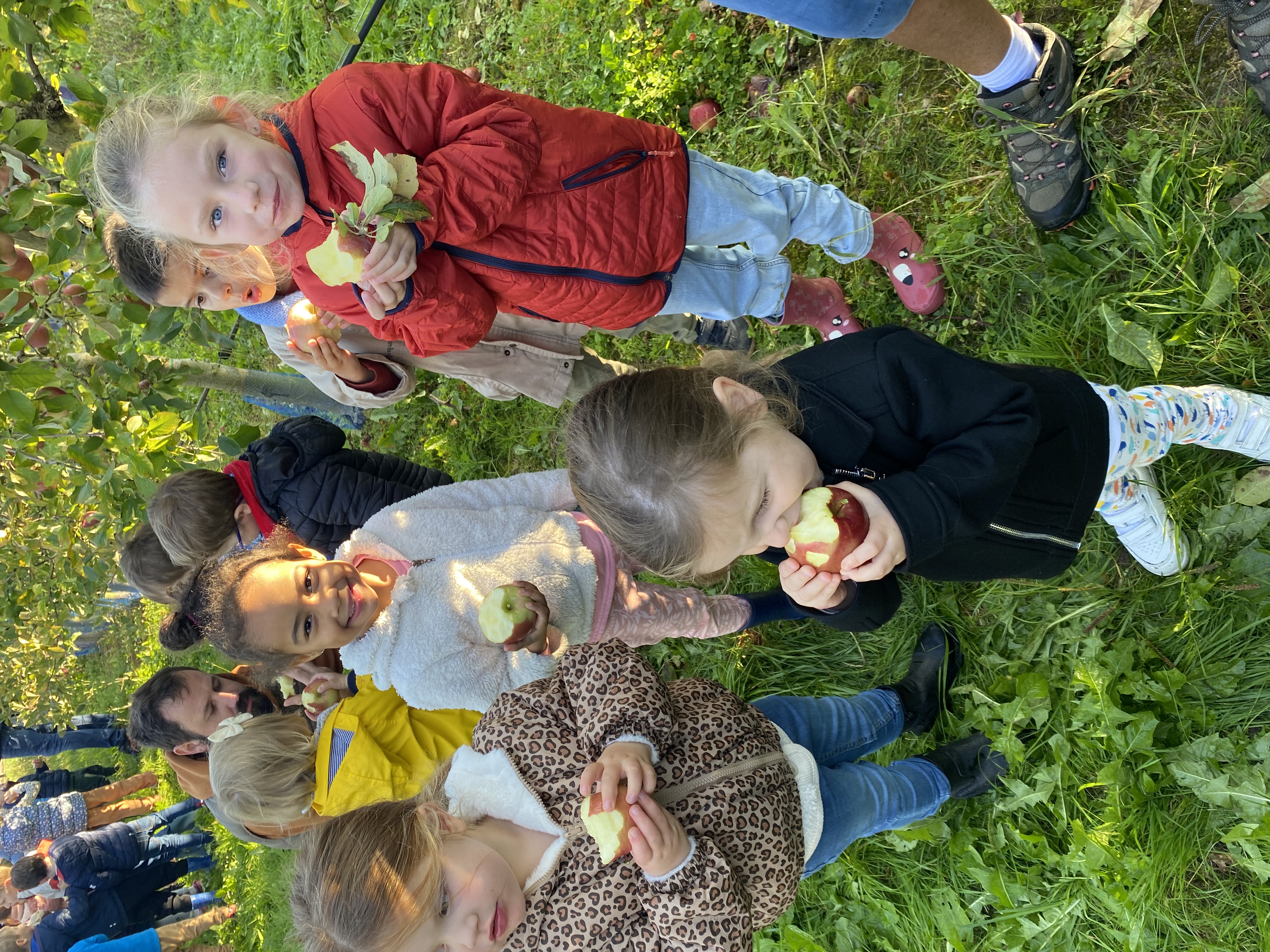 Nous nous sommes baladés dans les allées. Mr Gauter nous a expliqué les chaussettes à lapin, les différentes variétés de pommes, le système d’arrosage, comment cueillir les pommes. Nous avons même eu le droit d’en déguster une.