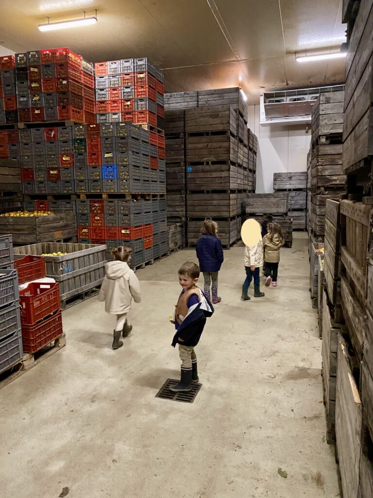 Nous avons visité aussi le grand frigo. Nous avons également dégusté un petit verre de jus de pommes.