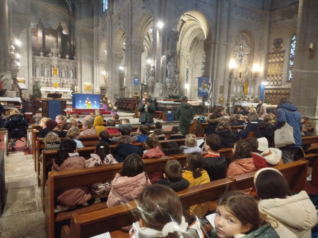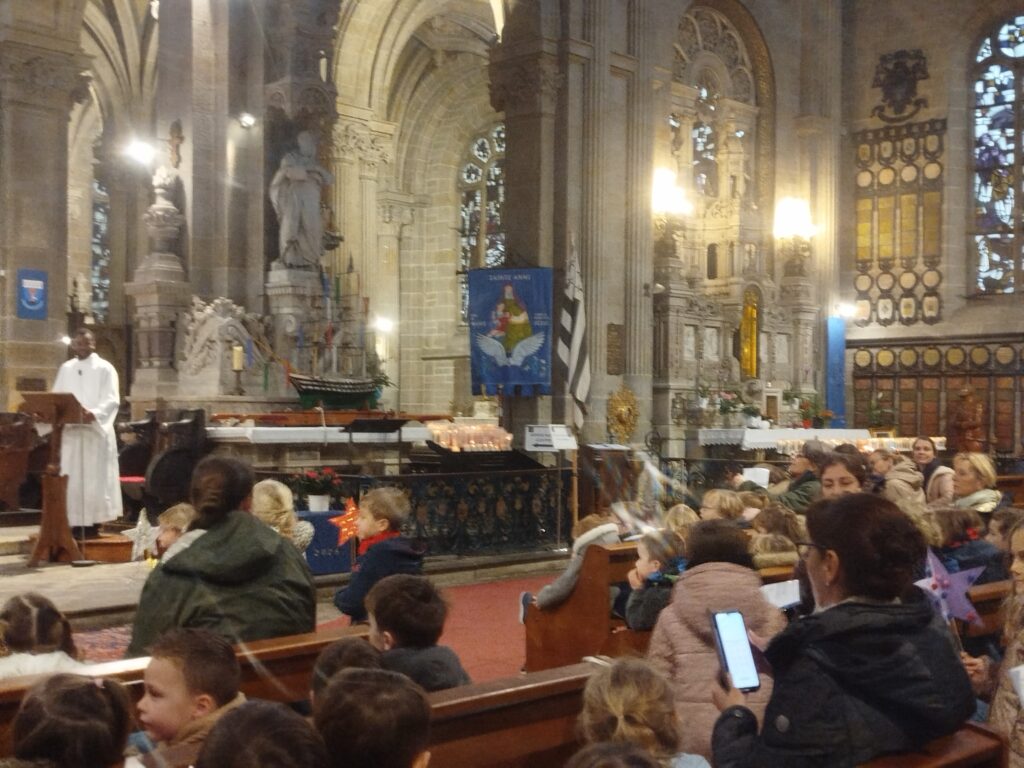 Mardi 16 décembre nous sommes allés à la basilique pour célébrer l’Avent. Toute l’école était réunie pour ce temps de célébration. Chaque classe avait confectionné une étoile. Nous avons prié et chanté avec Gérald et la pré maitrise. Quelle chance!