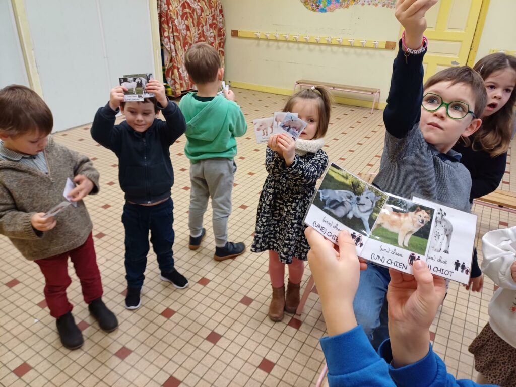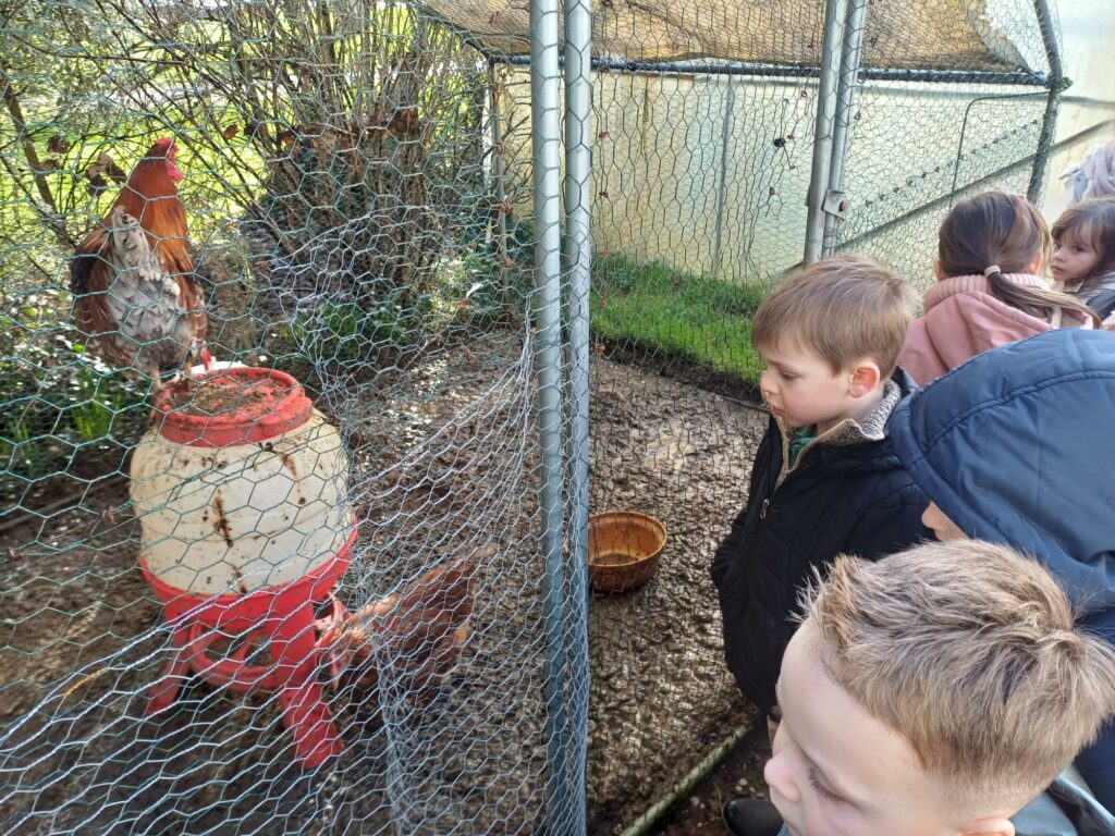 Les PS-MS ont étudié les mâles, femelles et petits des animaux de la ferme et des animaux domestiques. Pour rendre la séance plus concrète nous sommes allés observé les poules et le coq du Père Gwénaël.