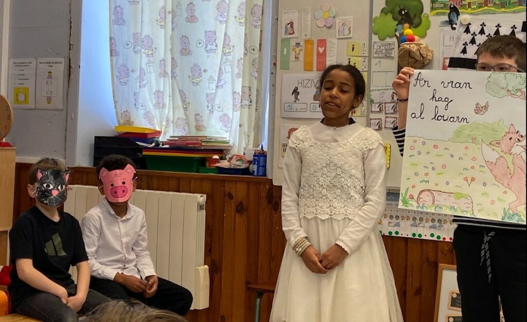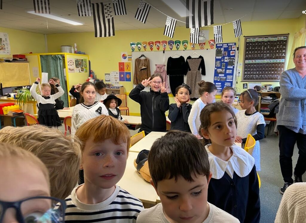 Avec la création d’un abécédaire de la Bretagne, l’histoire d’Anne de Bretagne, le conte de « la grotte des Korrigans », les pièces de théâtre en bretons, les fables en breton, le repas de crêpes, la visite guidée des costumes, le fest deiz : une journée bien remplie et dépaysante à souhait…