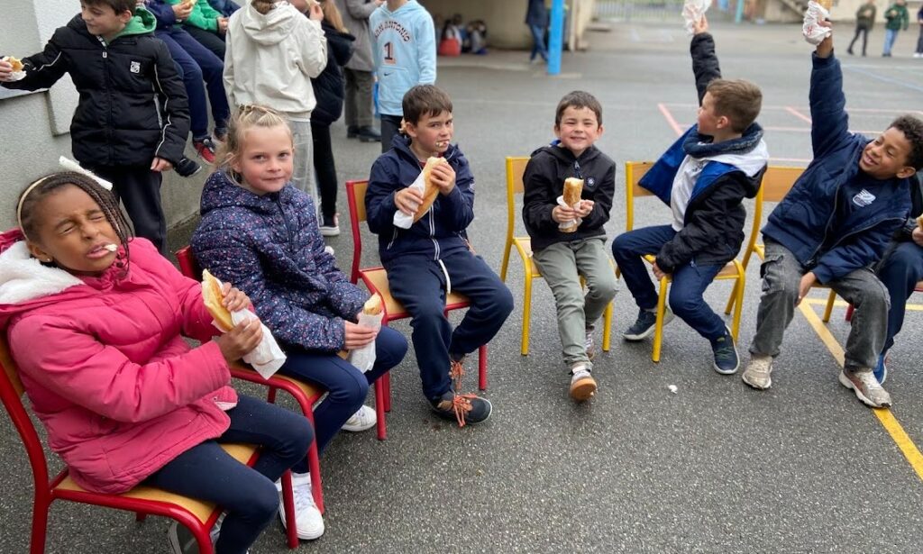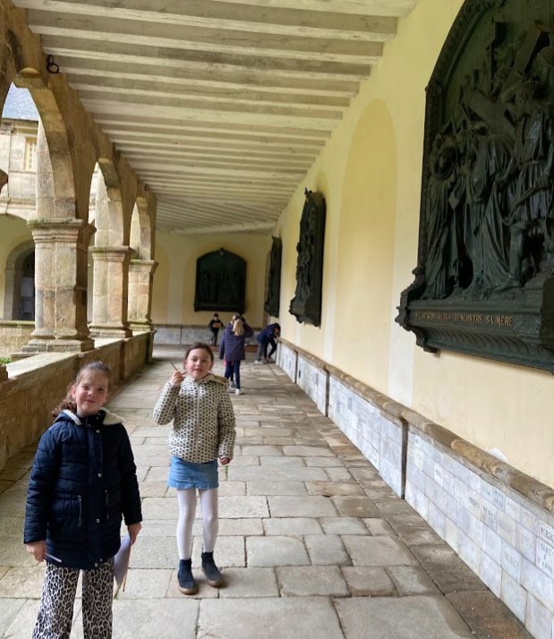 Pour se préparer à Pâques, nous avons découvert les 14 stations du chemin de croix du cloitre puis participé ( la classe au grand complet!) au repas partage pour aider au mieux Emy.